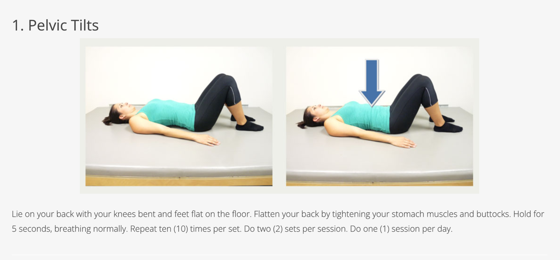 Exercise in the morning and evening, performing each movement 10-20 times per session. (Do not exercise if your back hurts.)
